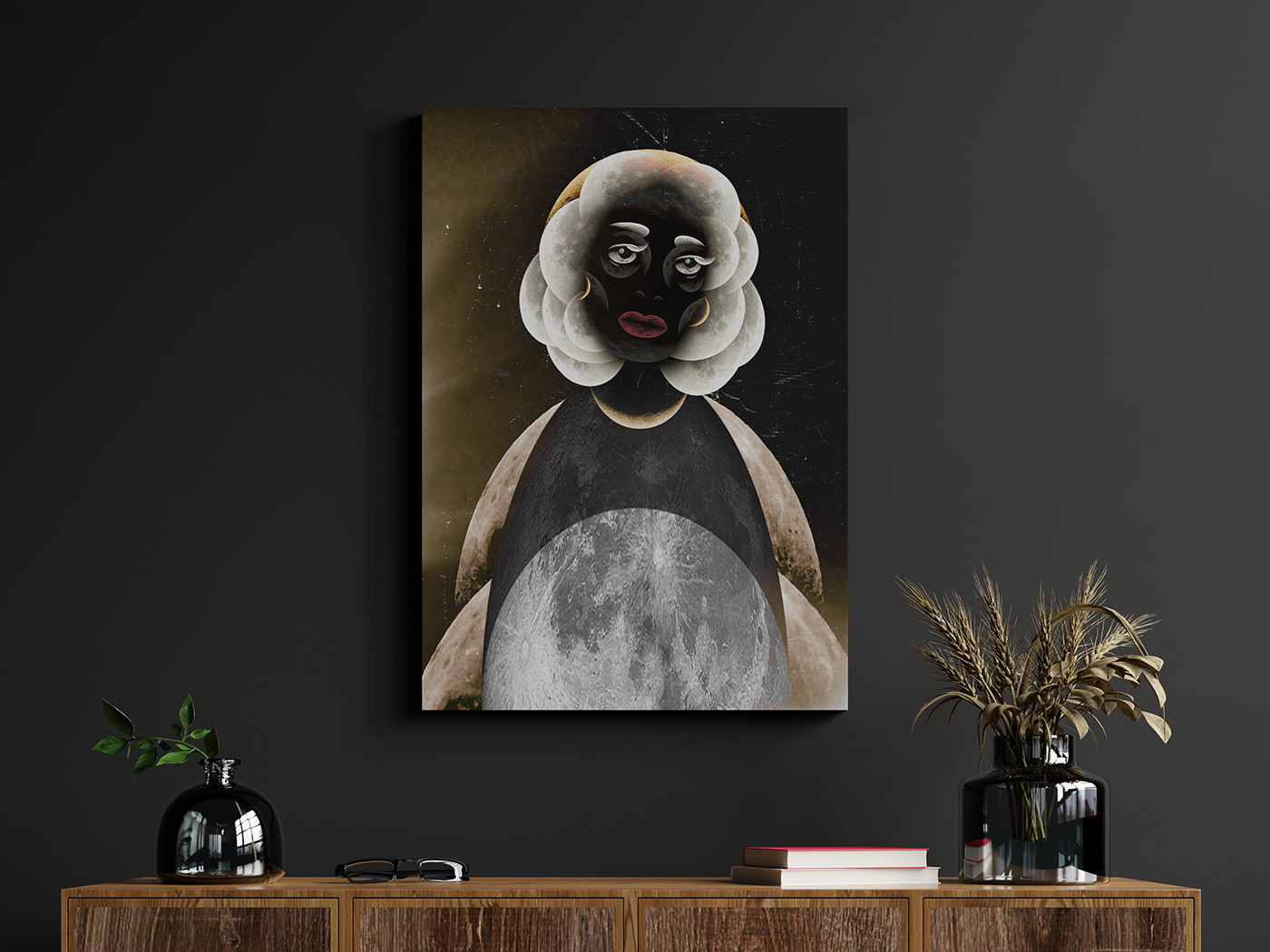 „Autoportret z Księżyca” to wizualna medytacja nad cyklem życia, emocjami i zmiennością człowieka. Łączy osobistą ekspresję z uniwersalnym symbolem strażnika czasu, odnowy i przemijania, Księżyca. Dodanie inspiracji muzycznej sprawia, że praca staje się jeszcze bardziej intymna i emocjonalna, przenosząc widza w przestrzeń pomiędzy sztuką, kosmosem a osobistym przeżyciem.